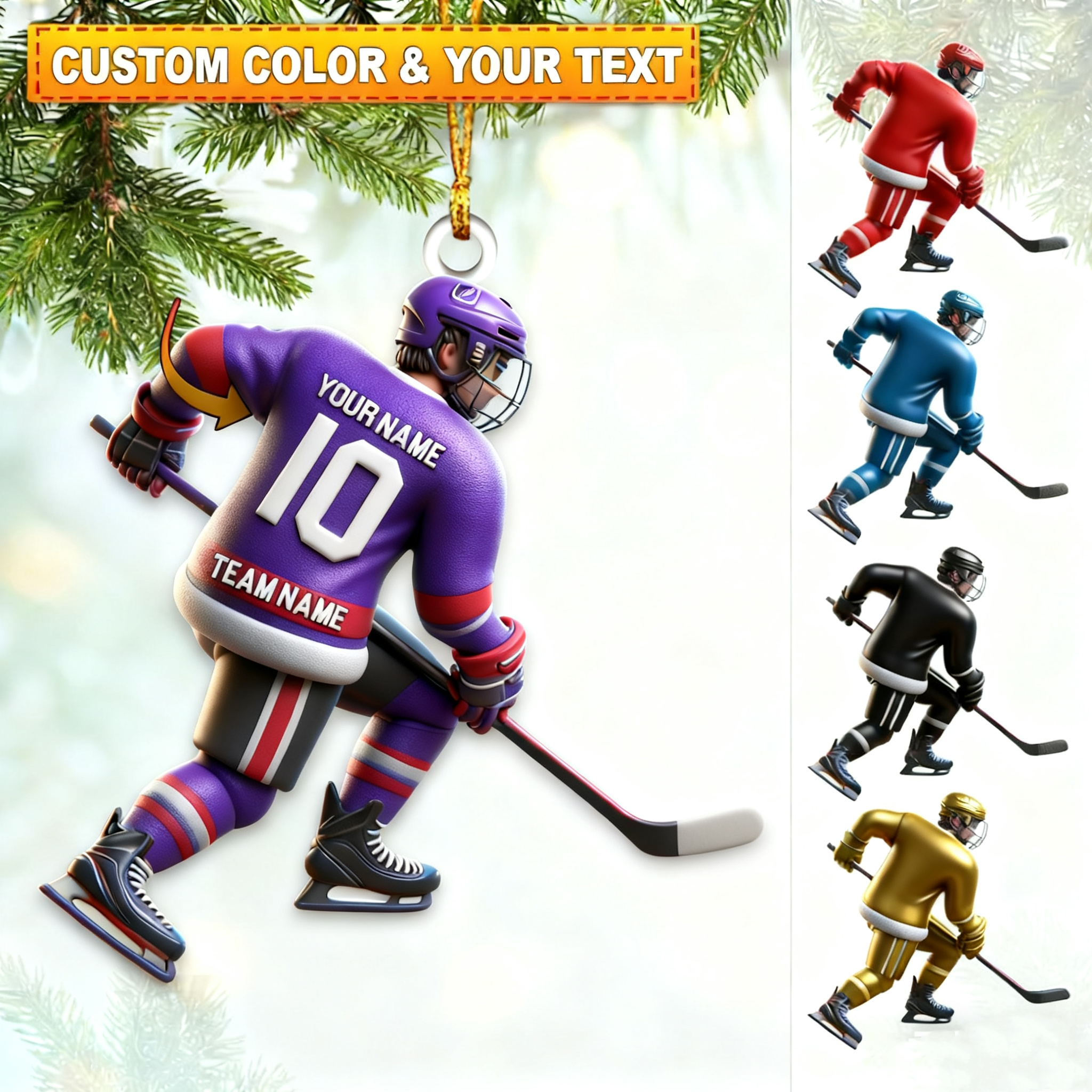 Custom Name and Number Ice Hockey Ornament, Christmas Gift Decoration
