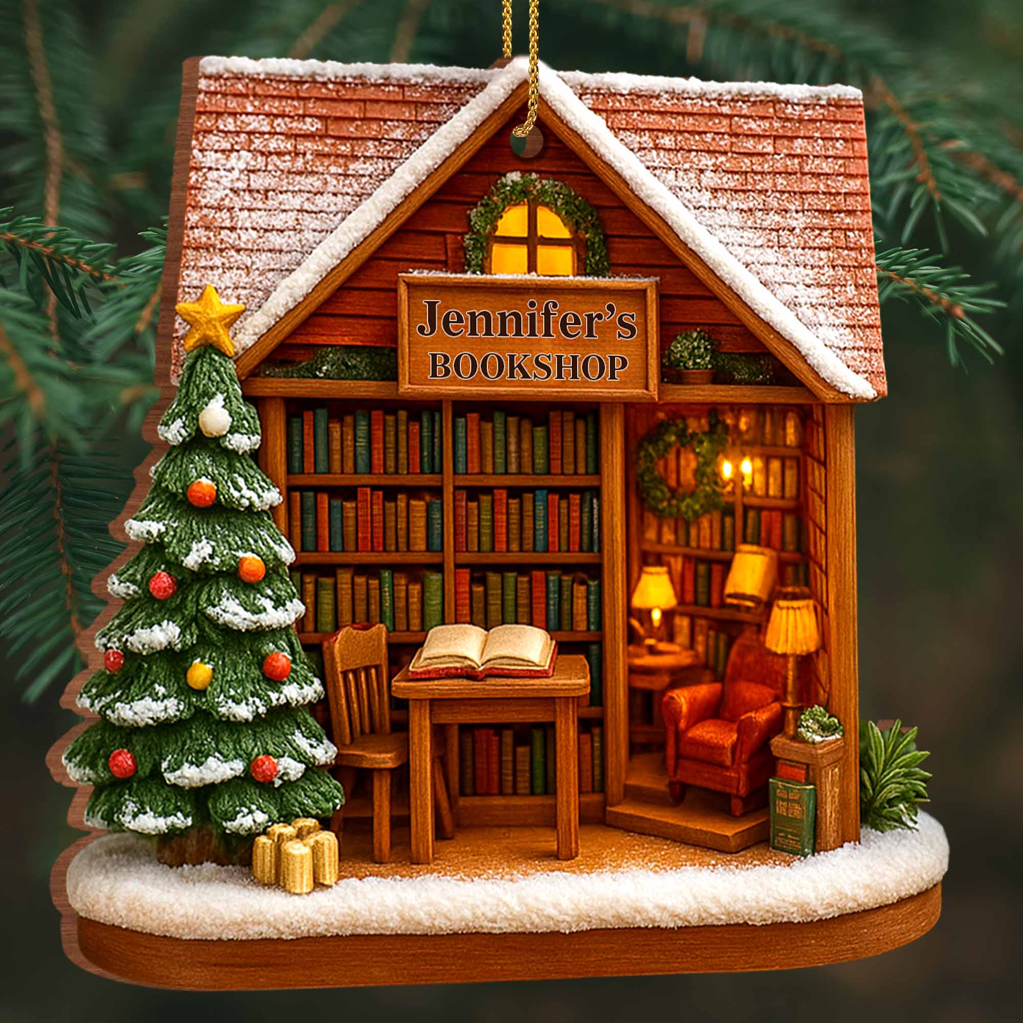 Discover the perfect gift for book lovers! Our custom wood ornament features a charming bookshop design. Personalize it with a name for a unique literary gift. A storybook keepsake for Christmas or any occasion.
