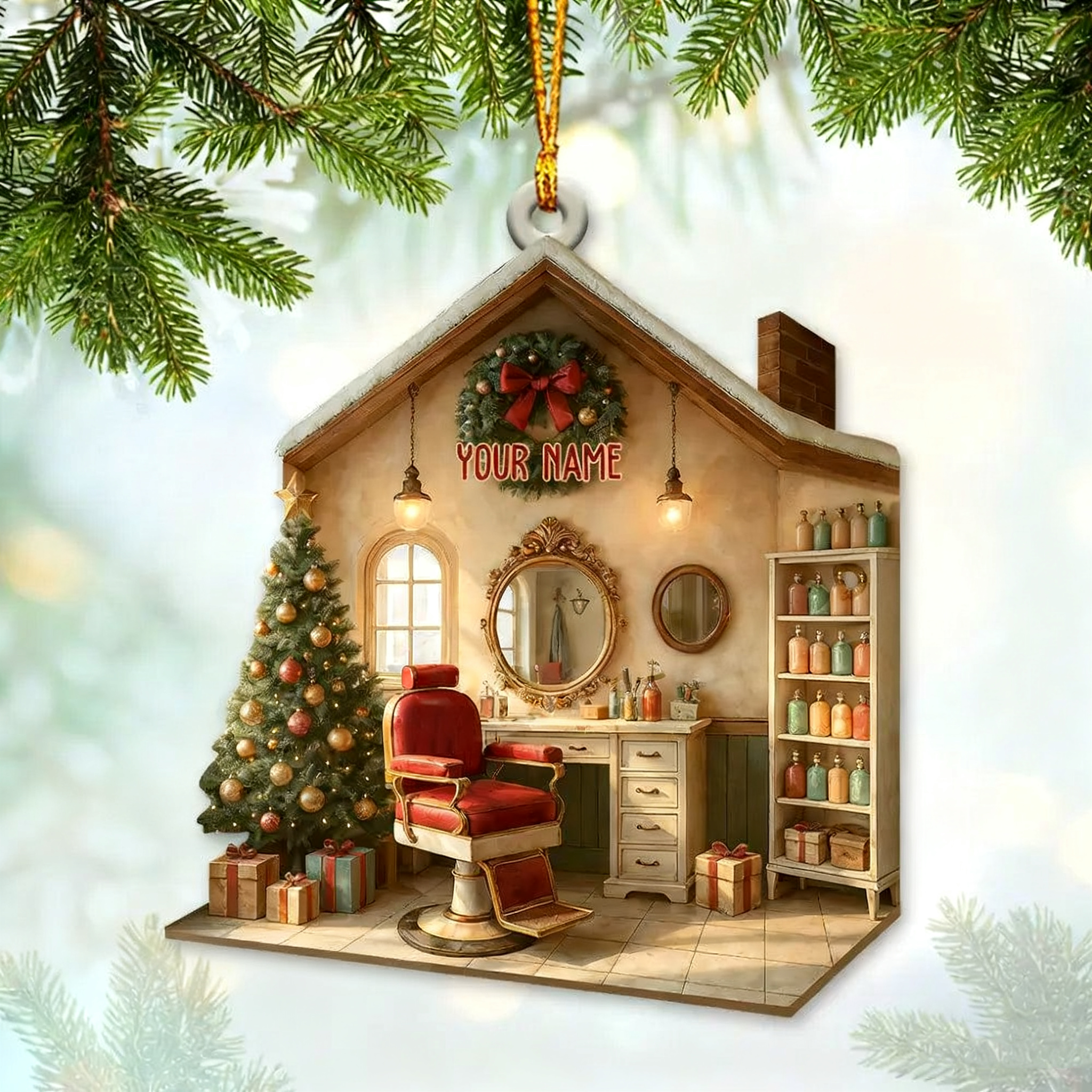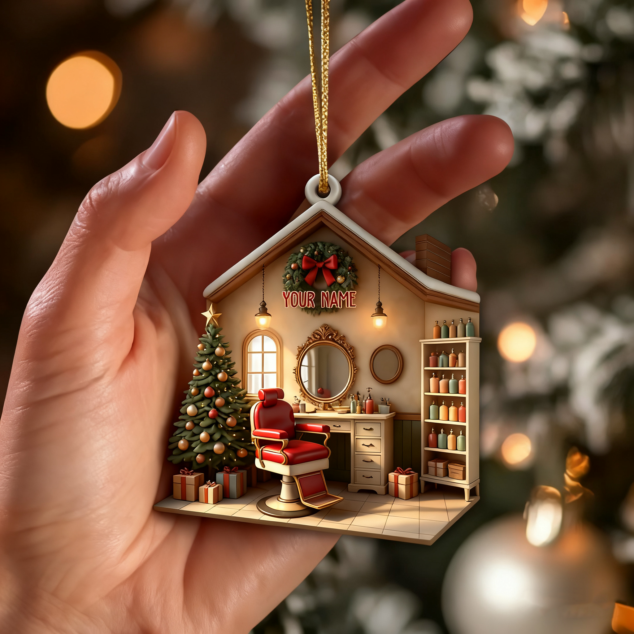 Personalized Custom Name Hair Salon Ornament, Hair Salon Christmas Decoration
