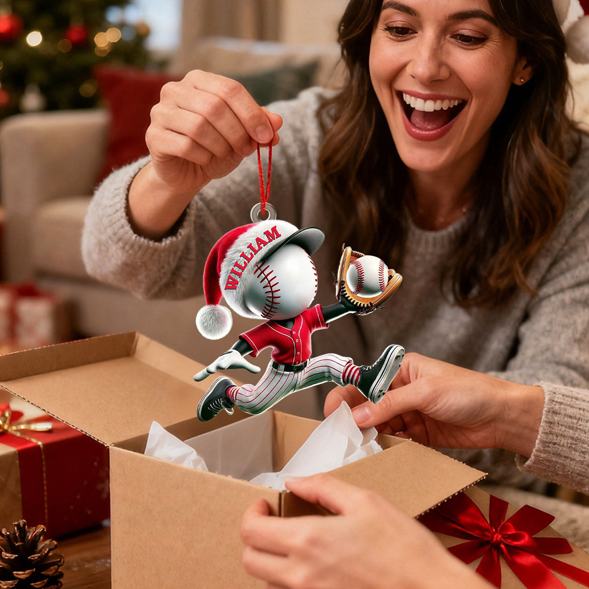 Celebrate your favorite baseball lover with this dynamic catcher-themed ornament! Personalized with a name, it's the perfect way to honor their passion for America's favorite pastime.