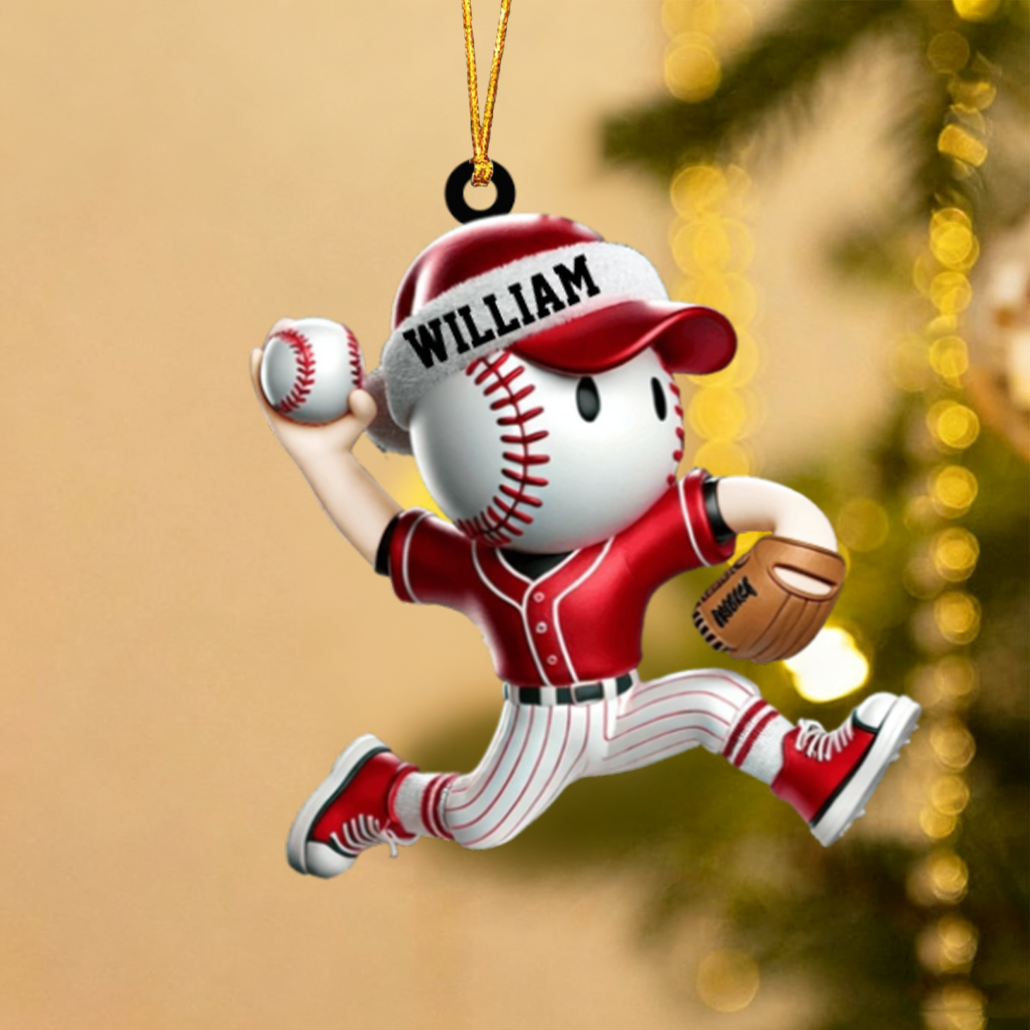 This personalized baseball player Christmas ornament perfectly captures the love and dedication to the sport. Carefully designed details showcase the charm of baseball, while personalized customization makes each gift a unique keepsake.