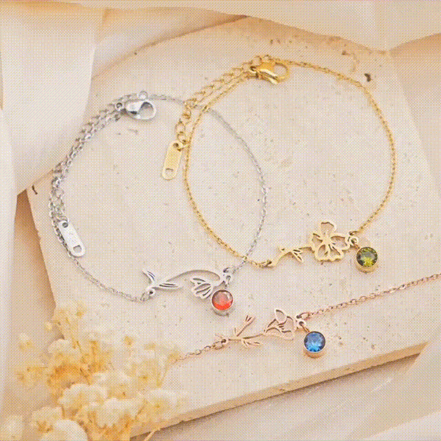 Personalized Birth Flower & Birthstone Bracelet- Jewelry Gift for Family/Friends/Sisters